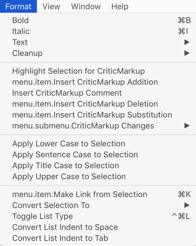 Critic Markup Items in Format Menu?
