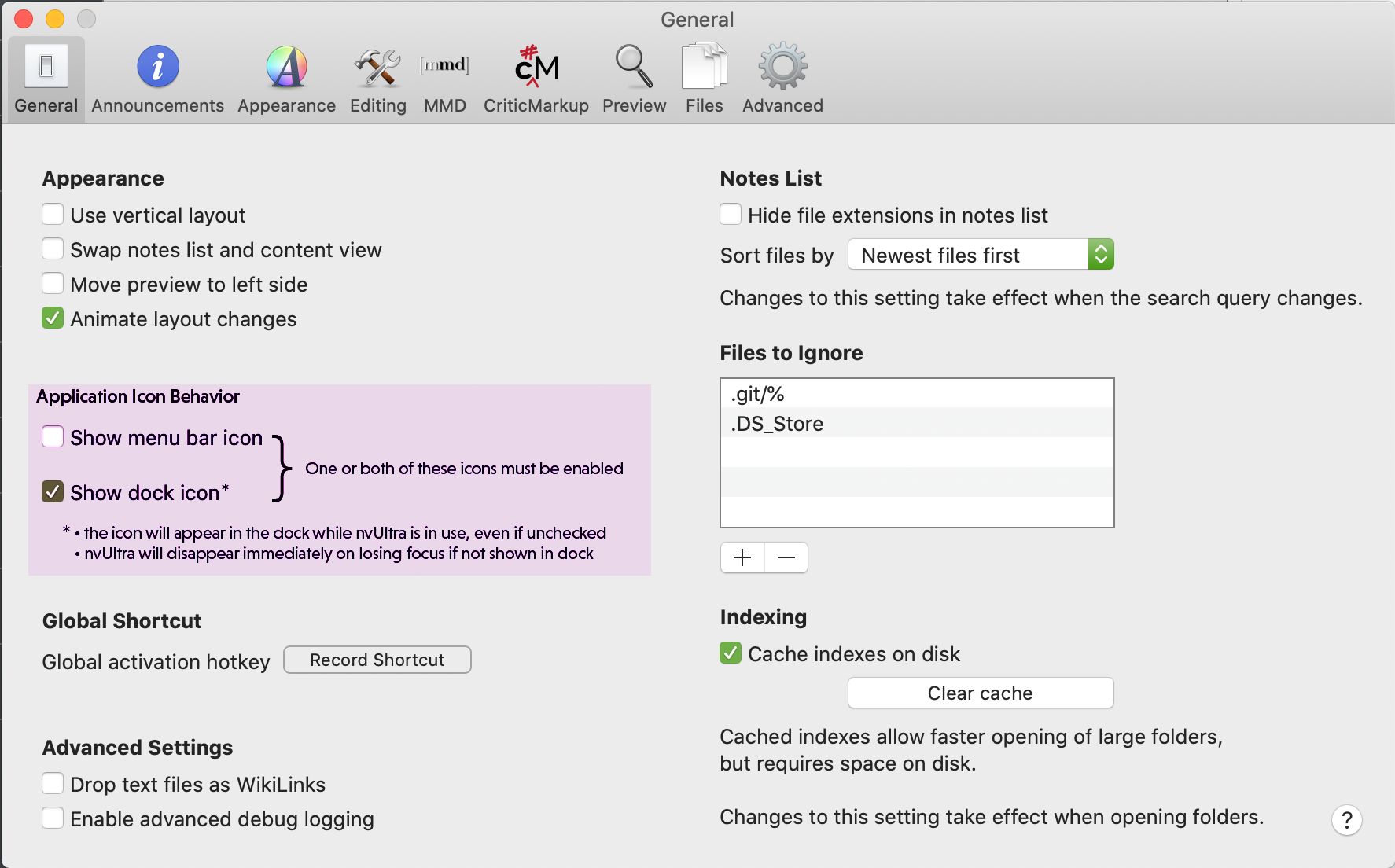 As mentioned above, the difference from nvALT is that Ultra shows its dock icon temporarily when coming forward. It's an intentional decision that allows full access to the entire menu. But it means that if the Ultra window stays open when you switch to another app, it just continues running in your Dock. At that point, you've completely defeated the point of having the Dock icon hidden. We're willing to consider other approaches, but based on our discussions so far, the ideal solution for people experiencing this concern is to just not disable the Dock icon at all.