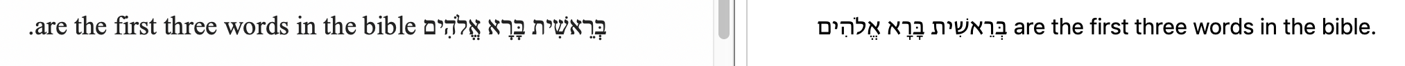 2. FooSo again, I understand that you don't see the intended result, but *if* the macOS rule is that the first characters determine the writing direction for a paragraph, then nvUltra is doing the right thing, to the best of my knowledge.