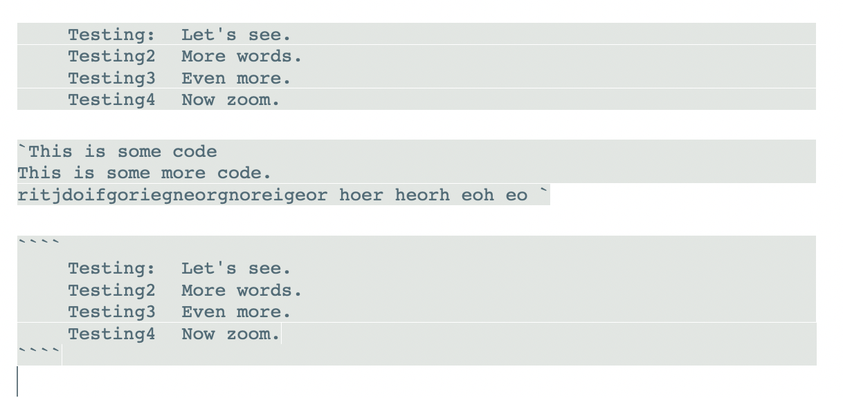 I haven't noticed the issue again, although code blocks do appear to have issues with breaks in the coloring. It varies based on the zoom level, and in fact disappears for most zoom levels, but sometimes the coloring breaks.