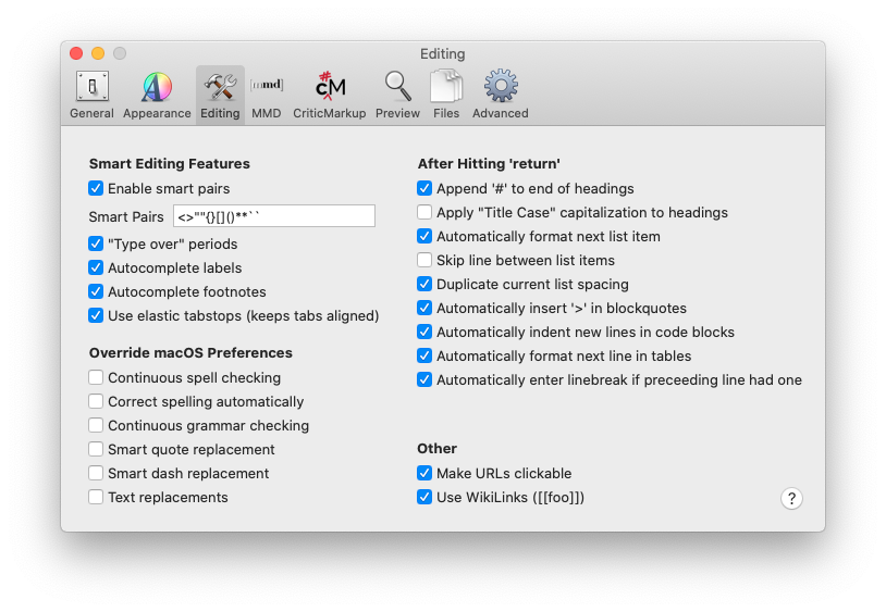 Can you post screen shots of your preferences? (Appearance, Editing, MMD)?