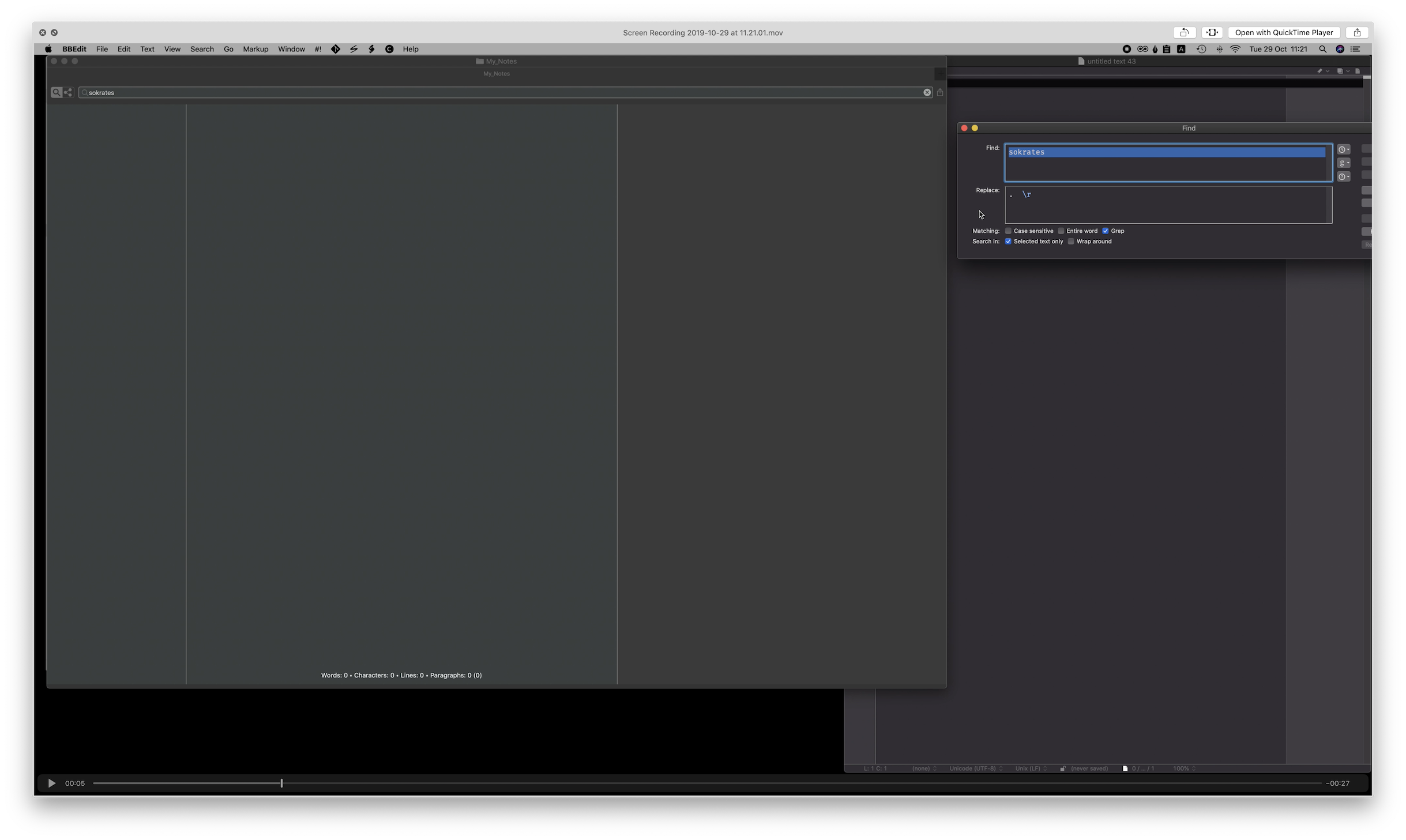 If I leave some text in the search field in nvUltra and then switch to BBEdit, the text in the search field gets pasted into the search field in the Find window of BBEdit. Regardless if that Find window is open or not.