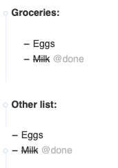 Here's one more pic how it renders in nvUltra. In any case, I agree that it's a great experience already to manage TaskPaper files in nvUltra. I tried for a while to have these lists in OmniFocus, then considered to have them in the new Reminders app, but the plain text / TaskPaper workflow with nvUltra works smooth, at least as long as you work on Mac.