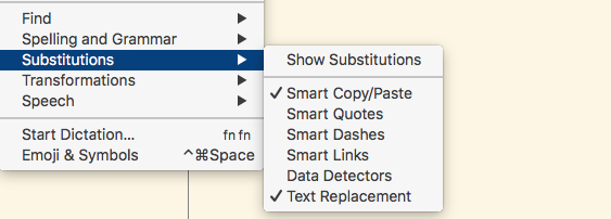 Text Substitution Behavior