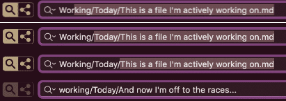 Here's what I'm getting at: say you have a subfolder called "Working", and you want to jot down a quick note into that folder. So you start typing in "Wor", and chances are "Working/The last subdocument you edited in here.md" is populated into the search field.