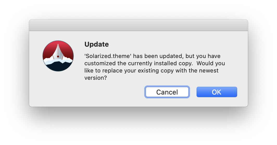 The alert presents a question which the default button doesn't answer. A "Replace" inscription would help the user greatly to choose the right option.