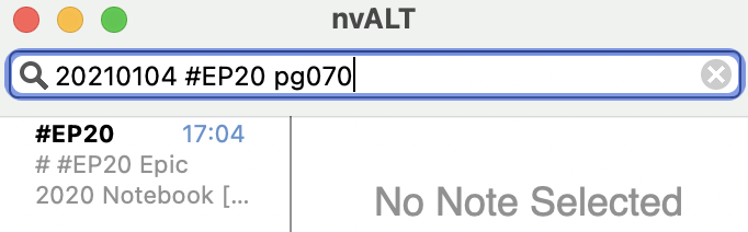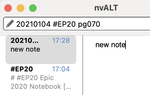 ...such that if I don't want to make this new note now, I just click the note it came from (shown above as the #EP20 note) and I am back where I started...