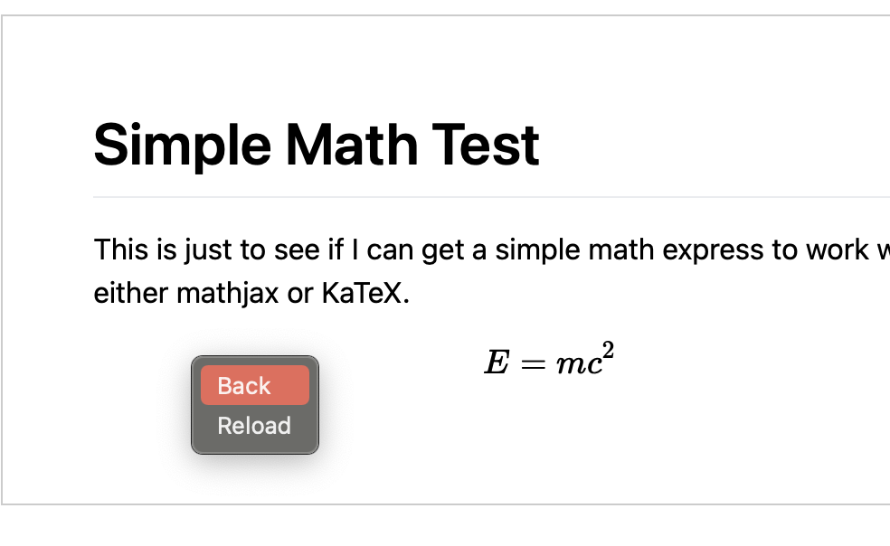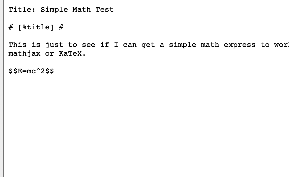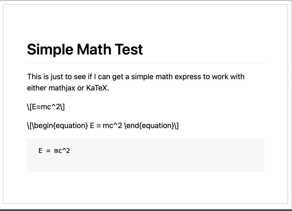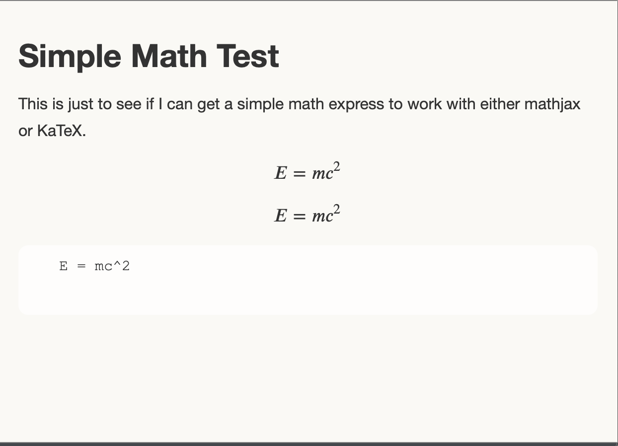 This is just to see if I can get a simple math express to work with either mathjax or KaTeX.
