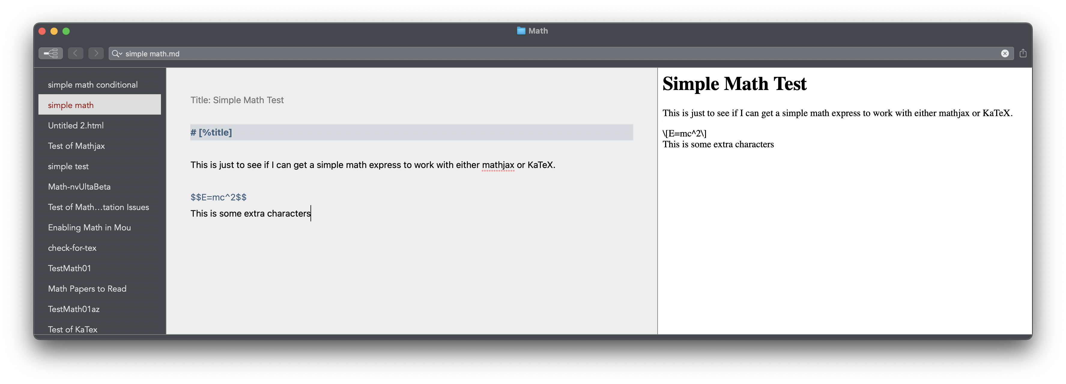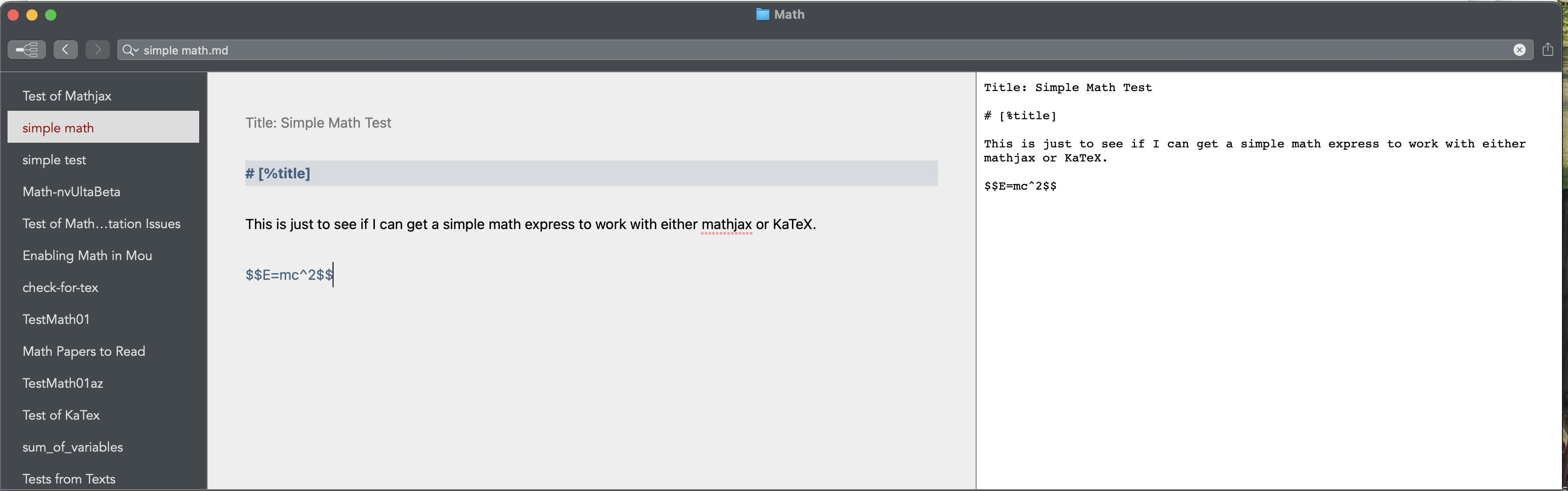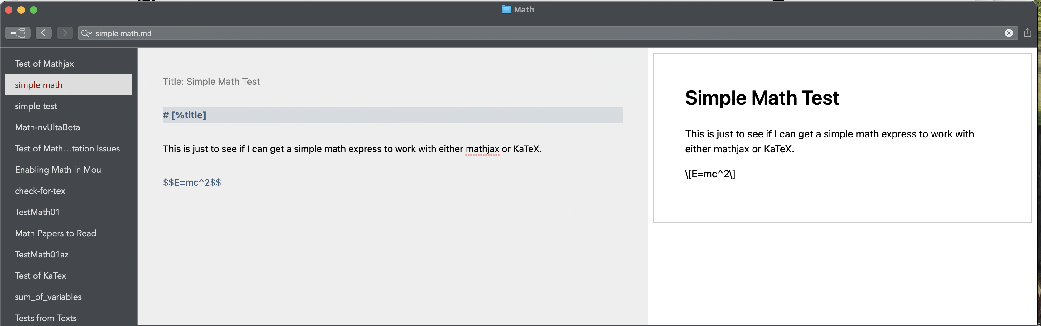 This is just to see if I can get a simple math express to work with either mathjax or KaTeX.