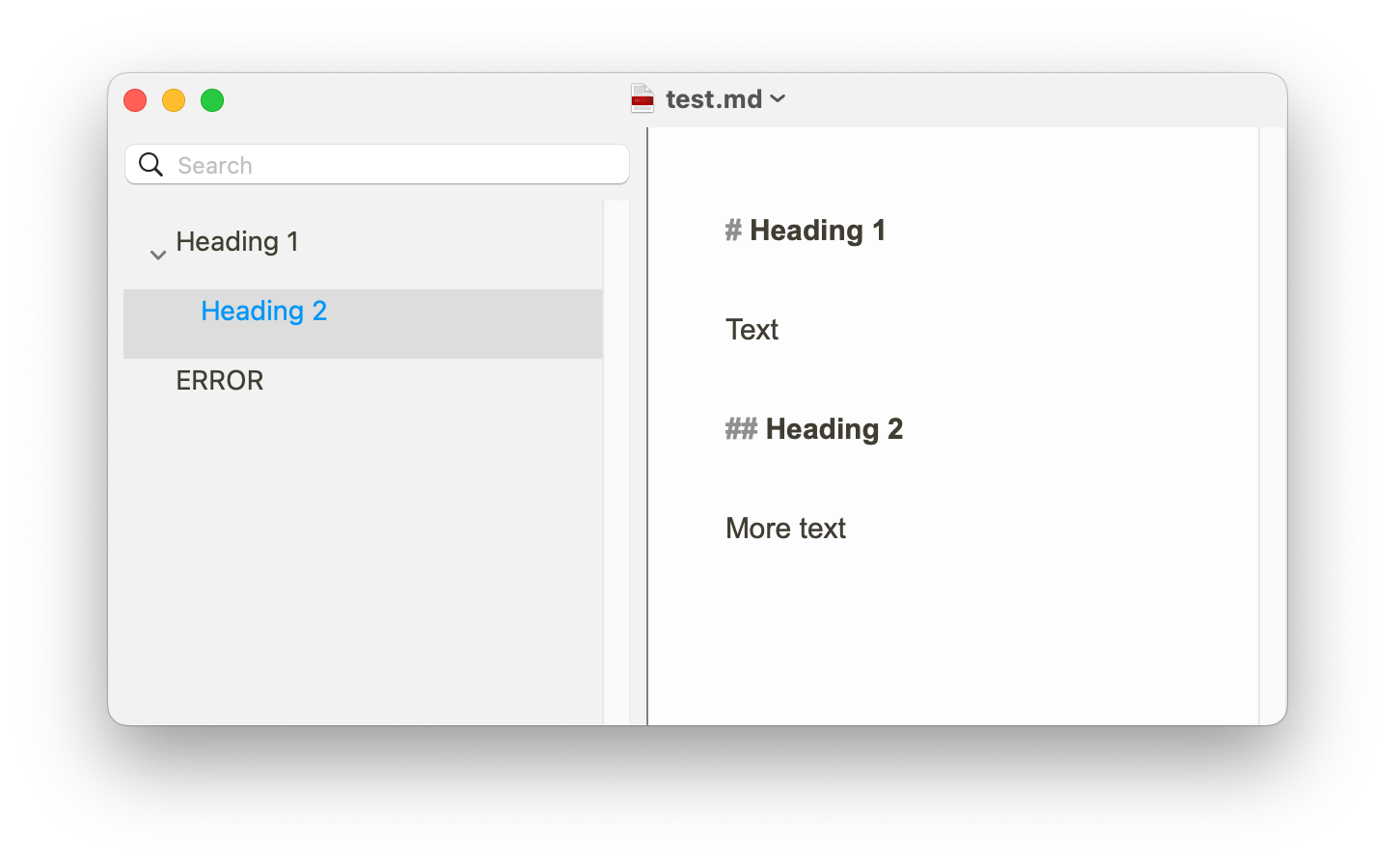 …one thing i didn't mention is that I'm seeing the word "ERROR" in the sidebar. In this case it has something to do with headings, because it disappears if I change the level 2 heading to a level 1. Am I being stupid?
