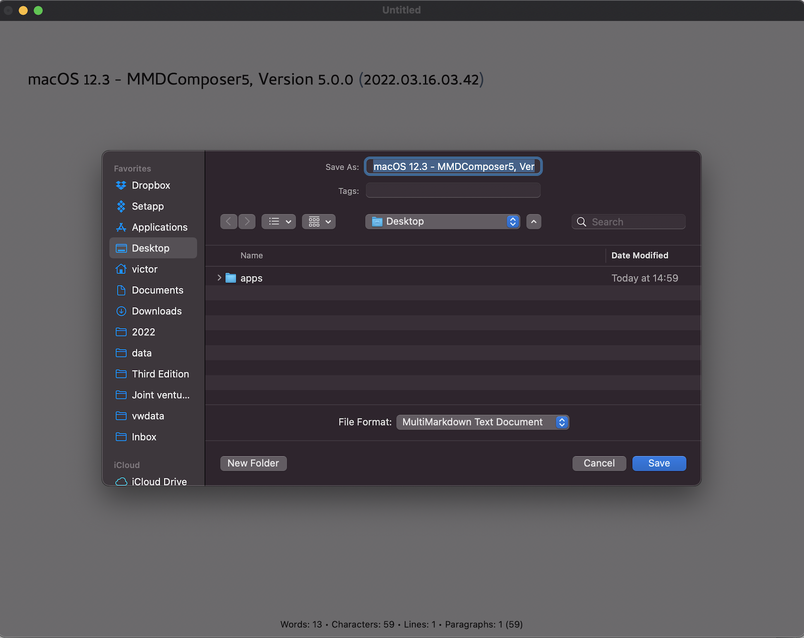 CompletedUsing macOS 12.3 - MMDComposer5, Version 5.0.0 (2022.03.16.03.42) - on a Silicon MBA.